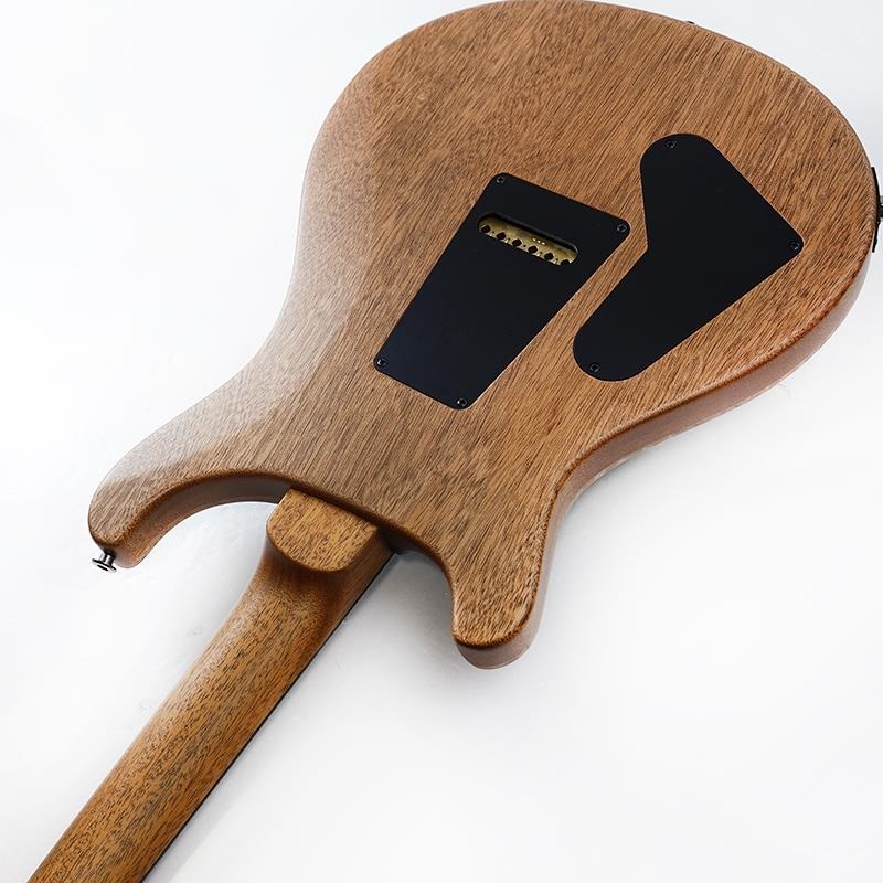 ボディのトップ材に使用されたマンゴーは、本モデルの大きな特徴のひとつであり、キルト・メイプルのように目を惹くルックスだけでなく、サウンド特性もメイプルに近いことから採用されました。サテン・ラッカー・フィニッシュは、ギターそのものの生鳴りを高め、奥行きのある立体的なサウンドを生み出すと同時に、快適な演奏性を実現。創業初期のPRS Guitarsへのオマージュとして、エボニーを使用した指板とヘッドストックには、それぞれオールドスクール・バード・インレイと、プリ・ファクトリー期のイーグル・インレイが施されています。