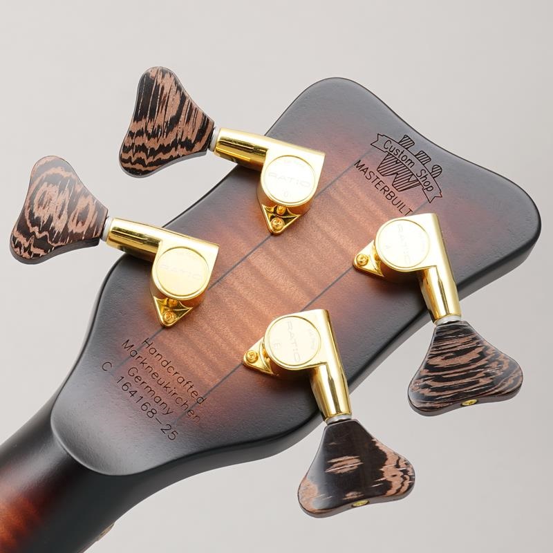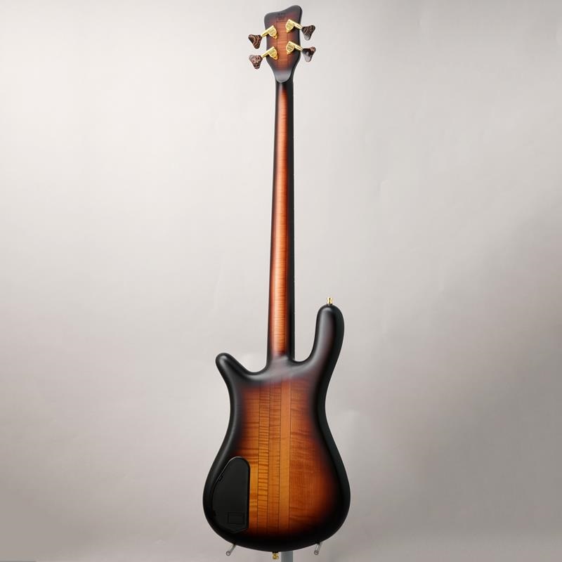 奥行き、深みを持った見事なフレイム杢が浮びあがるAAAグレードのフレイムメイプル材をボディウィングに、3ピースでラミネートされたウェンジ材ネック&指板のスルーネック構造となります。当Classic Lineではブロードネック仕様に比べボディ、ネックがシャープなサイズとなり、指板Rも緩やかなカーブを持っております。MECのP&J ピックアップと3band EQをマウントする事で、タイトで厚みのあるサウンドを出力し、コシのあるミドルがスルーネック構造により伸びやかに、芯の太いトーンを奏でます。指弾きで柔らかながら輪郭のあるトーン、ピック弾きでのゴツンとタイトなトーンは、アンサンブル内で確かな存在感が発揮されます。