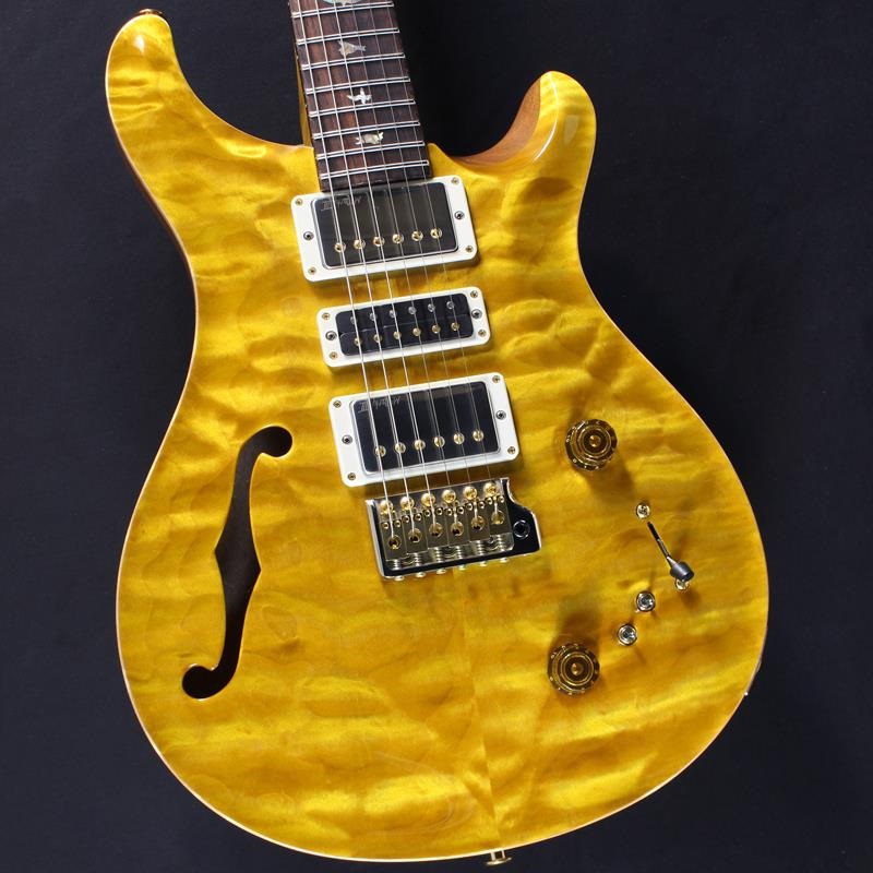 PRSブランドの中で最高ランクのPSグレードの次のグレードに位置するアーティスト・グレードのトップ材は、眺める角度によって表情が変わり、立体的な奥行きを感じさせる杢目が大変美しく、眺めるだけでも楽器の価値を感じることが出来る大変素晴らしい仕上がりとなっております。