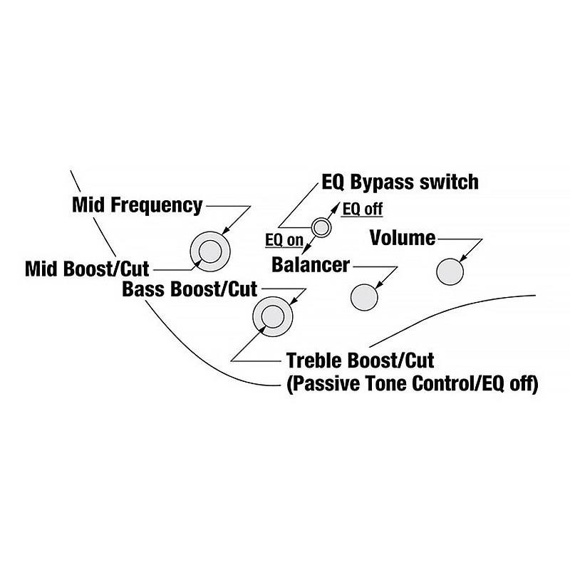 Equalizer: Vari-mid 3 band EQ w/EQ bypass switch (passive tone control on treble pot)
