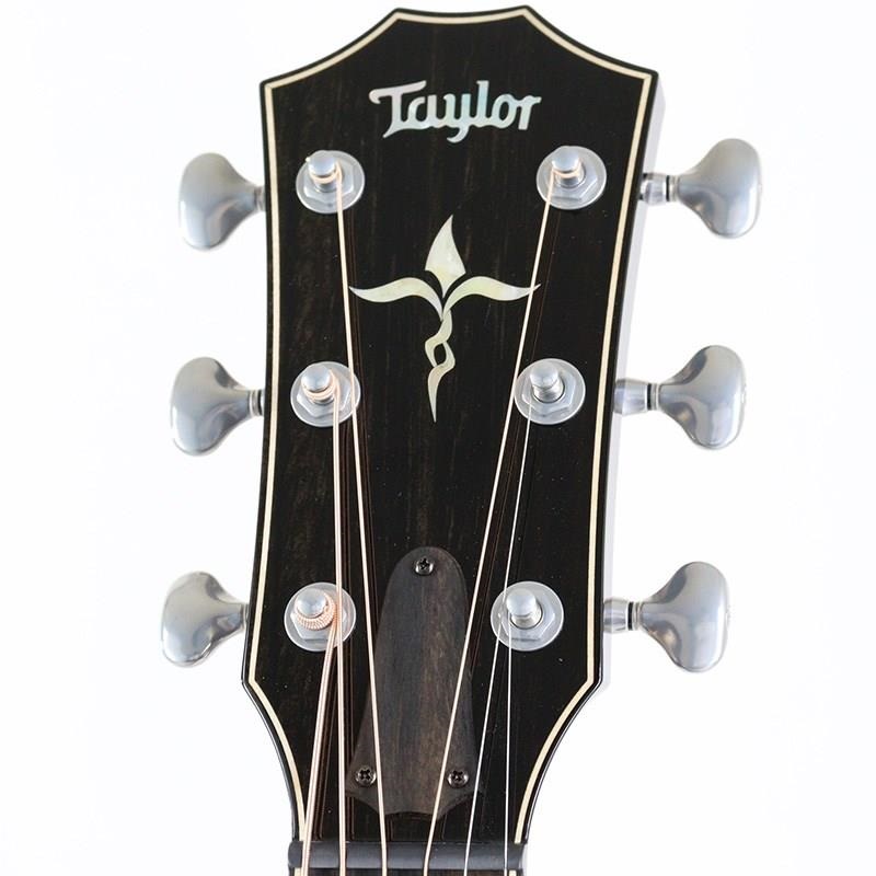 ブレイシングには今やテイラーのスタンダード仕様になっているVブレイシングが採用されております。サスティーン向上や澄んだサウンドだけではなくブリッジ部分の強度も十分に確保されており、剛性もしっかりと備わっています。綺麗に整音されたサウンドはストロークでも堪能できますが、特にアルペジオやソロプレイで力を更に発揮します。細かなところではナットに採用されたブラックグラファイトが特徴的ですが、他の外観的な仕様は従来モデルと同様で、指板のインレイやボディーのパーフリングの施されたアヴァロンの装飾、ボディーで肘のあたる場所に施されたアームレスト等、ウッディーで上品なルックスも良く、さすがに上位のモデルらしい風格を漂わせております。