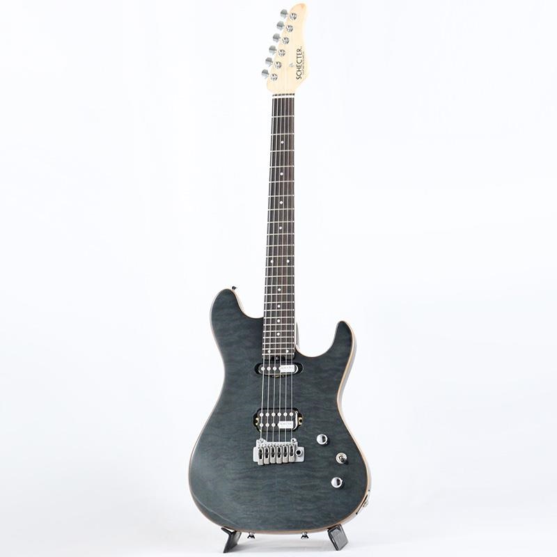 外観面ではキルテッドメイプルトップとボディの絶妙な曲線美が高級感を演出しております。あくまでトータルデザインはシェクターのコンポーネントスタイルを踏襲しておりますので、男性が手にしても全く違和感はございません。ピックアップには日本製シェクター定番のMonster ToneとSuper Rockを搭載し、コイルタップ、スプリット・トーンコントロールを装備する事で、ハードなリードサウンドから煌びやかなクリーントーンまでオールジャンルに対応可能な多彩なサウンドバリエーションを誇ります。