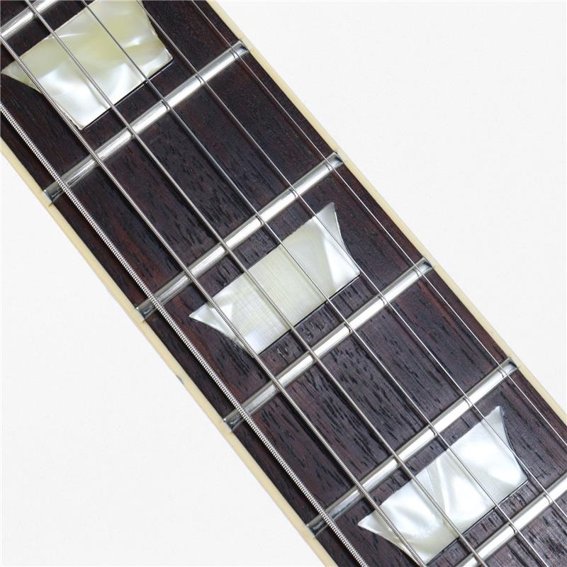 ボディバックはもとよりトップ材やネックにもマホガニーを採用していることで、メイプルトップよりも耳障りな高域が出ておらず、ディマジオ・ピックアップと相まってか気持ちの良い中音域の抜け感とピッキングニュアンス、歪ませた際のバイト感も非常に心地良い個体となっています。