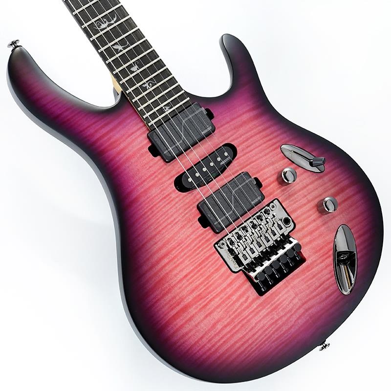 本モデルはメイプル・トップ&マホガニー・バックのボディに、メイプル・ネック&エボニー指板を採用。立体的なカーブ加工が施された極薄・軽量ボディにより、長時間の演奏でも快適なプレイアビリティを実現。ネックシェイプとジョイント構造は本モデル専用に設計され、極薄のネックは、幅を少し広く設けることによって強度を確保しつつ20インチ・ラディアスの指板面がストレスのない、スムーズかつスピーディな演奏を可能にしました。また、ネック内部にはカーボン・ファイバーのロッドを内蔵し、高い剛性とサスティンを生み出しています。