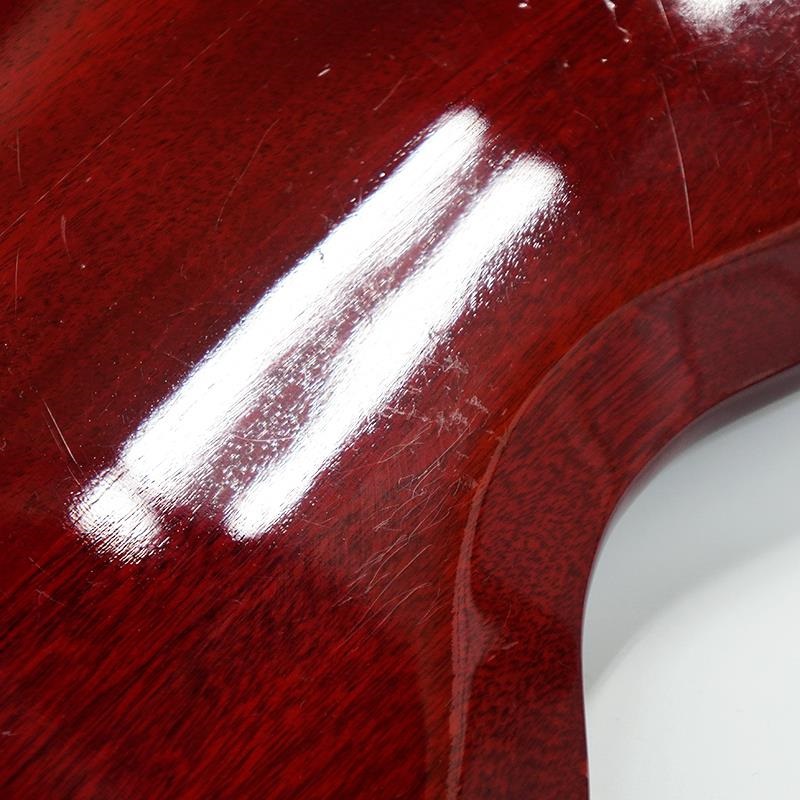 こちらは全体に無数の傷や打痕、ピックガードの弾き傷、目立つバックル傷、ネックバックの打痕、ポールピースの錆、パーツのくすみが見受けられますが、いずれもプレイアビリティ、動作に支障、問題ございません。傷、打痕、使用感は多目ではございますが、当店にてフルメンテナンスとクリーニングを施しておりますので、すぐにご使用頂けます。