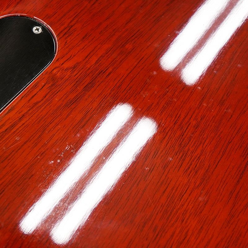 細かいスリキズや細かい打痕、塗装の元々からの小さいへこみ、塗装の引き、ボディバック全体の塗装ムラ、エンドピン部分の塗装のストラップ焼け。バインディング部分の幾つかの打痕、バックパネルのスリ傷、ピックアップカバーやパーツ類のくすみ等は見受けられますが、いずれもプレイアビリティに支障、問題ございません。全体的にもまずまずのコンディションです。当店にてフルメンテナンスとクリーニングを施しておりますので、すぐにご使用出来るお勧めコンディションの一本です。
