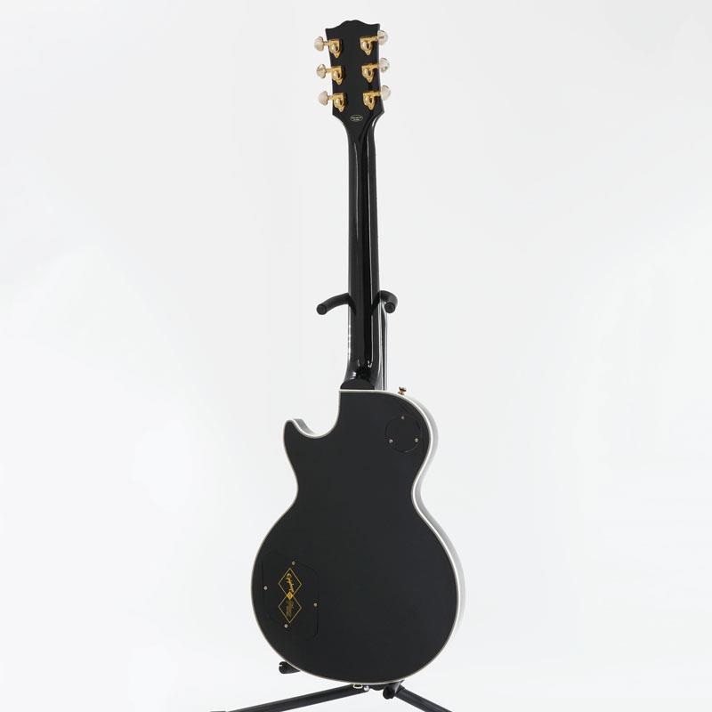 ワンピースマホガニー・ネック、50年代のラウンディッド Cプロファイル、エボニー指板、マザーオブパール・ブロックインレイ等、「タキシード」と称されるLes Paul Customの気品ある仕様の数々を採用しています。