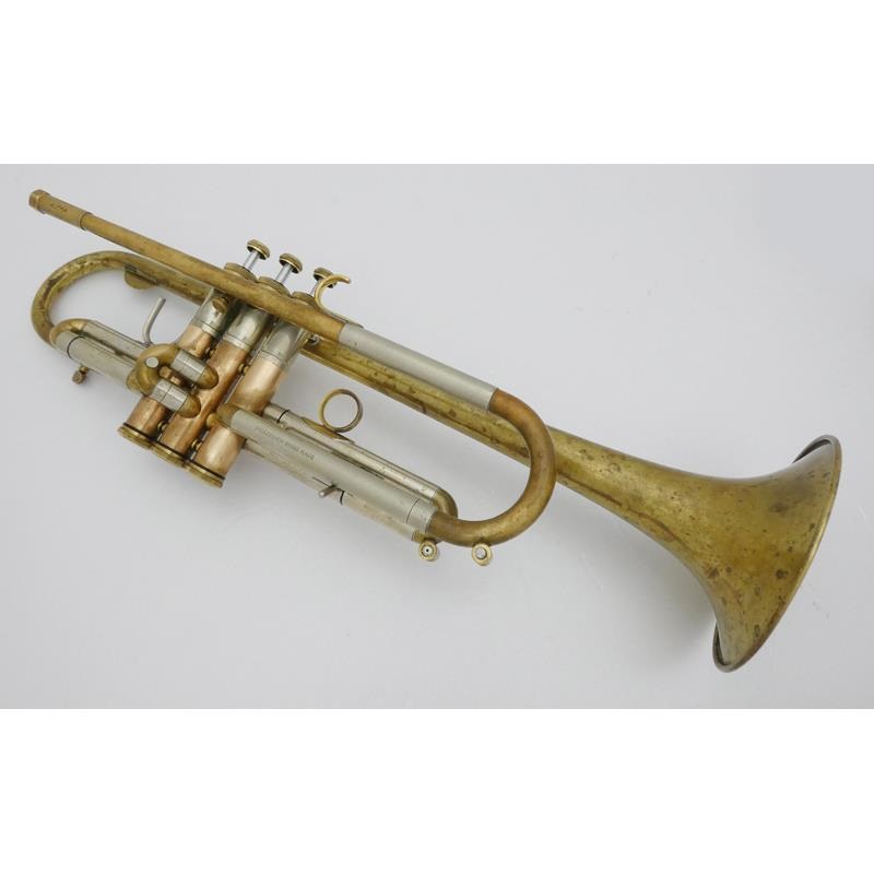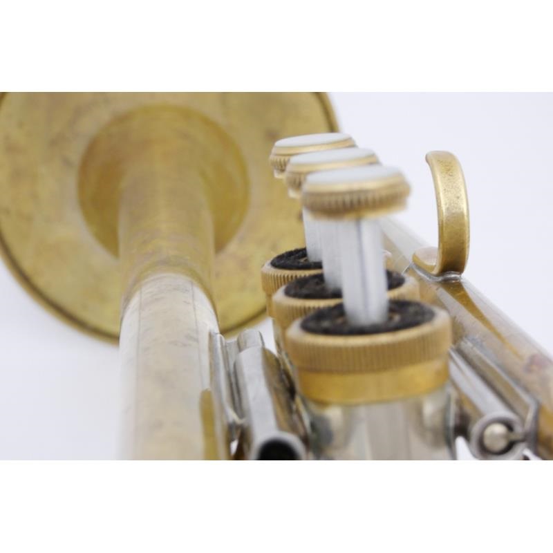 こちらのトランペットは、全体的に使用感があり、所々にキズや当てキズ、凹み、サビや変色などございますが、抜き差し管可動部やピストンなど演奏上問題なくご利用頂けます。