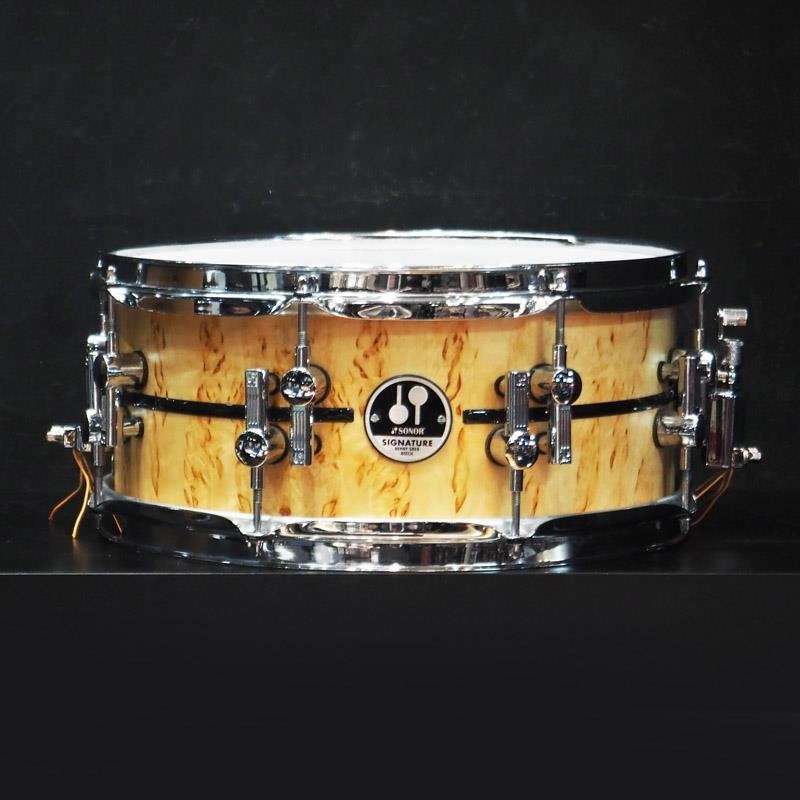 「今回ソナーから発売される私のシグネチャー・スネアドラムは、基本的には以前私のためにソナーが特注で作ってくれた物と同じです。様々なサイズのスネア・ドラムを試した結果、ビーチ材を用いて13''×5.75''という特殊なサイズにたどり着きました。