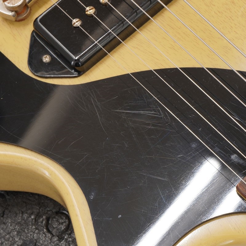 細かいスリ傷やピックガードの弾き傷、カッタウェイ分の打痕、ボディトップとバックの線状の傷、パーツのくすみは見受けられますが、全体的にもまずまずのコンディションです。いずれもプレイアビリティに支障、問題ございません。当店にてフルメンテナンスとクリーニングを施しておりますので、すぐにご使用出来るお勧めの一本です。