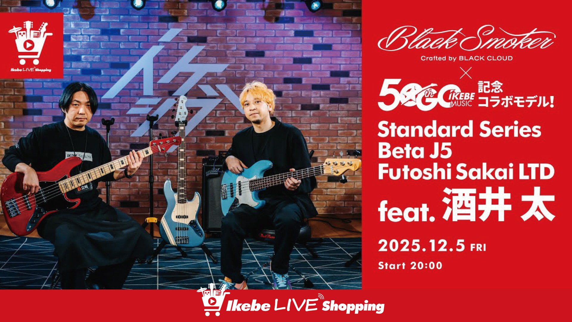 IKEBE LIVE SHOPPING #178 グランディベース東京 ~Black Smoker Guitar×イケベ50周年記念コラボモデル!Standard Series Beta J5 Futoshi Sakai LTD feat. 酒井 太~