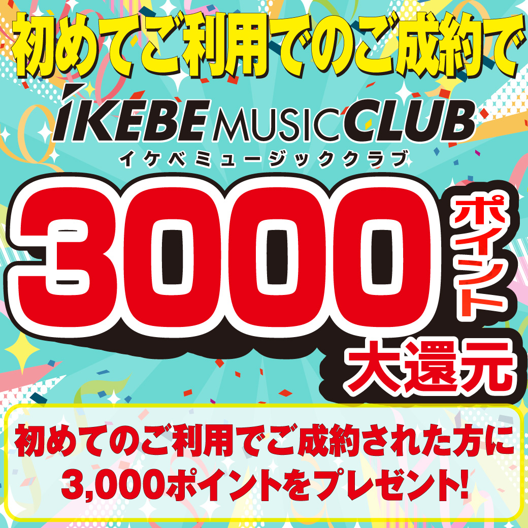 キャンペーン期間中、イケベミュージッククラブに登録し、イケベリユースWEBサイトから楽器・機材の買取査定をお申し込みのうえ、買取、または買い替え(下取)をご成約いただいた方に 3,000ポイントプレゼント!