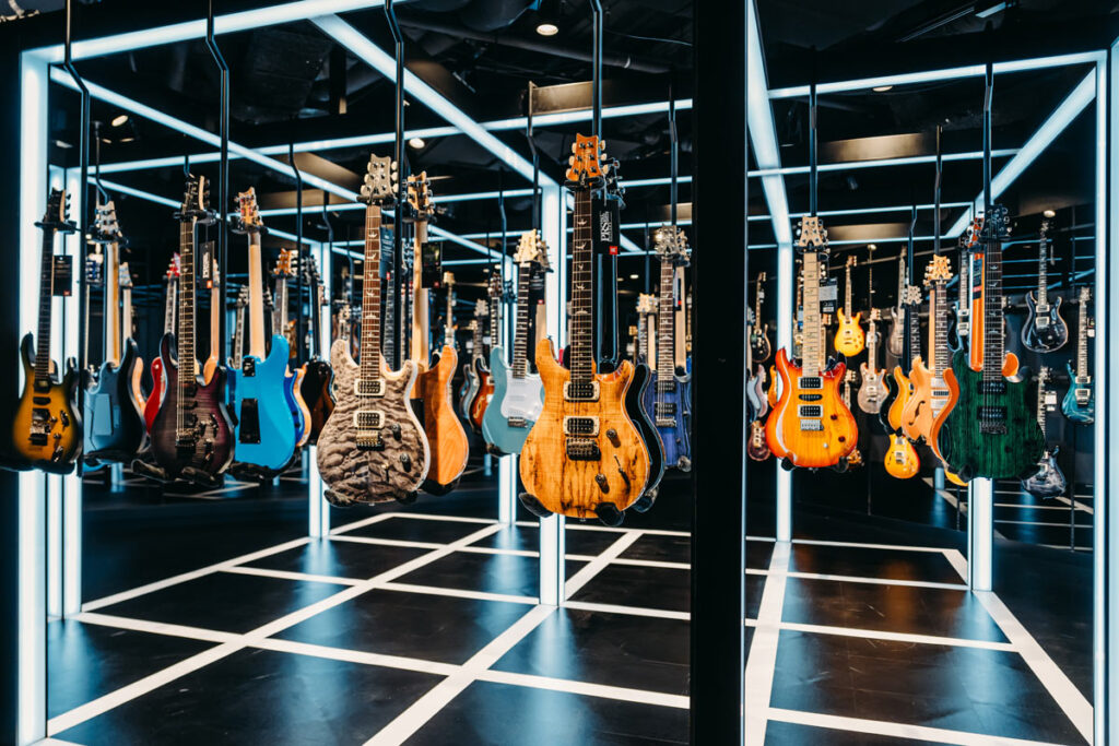 さらに、試奏スペースでは専任スタッフが用途や好みを伺いながら一本ずつ丁寧にご案内しますので、モデルごとのキャラクターの違いをしっかり体感いただけます。THE IKEBE PRS VAULTは、PRS の世界観を五感で体験いただける特別な空間です。