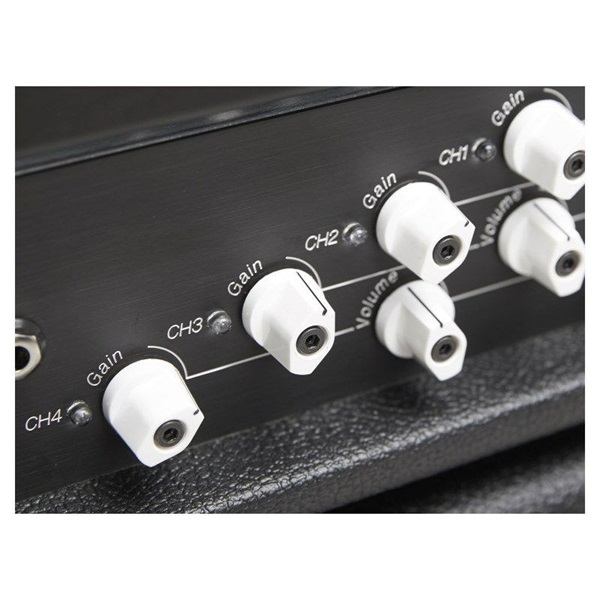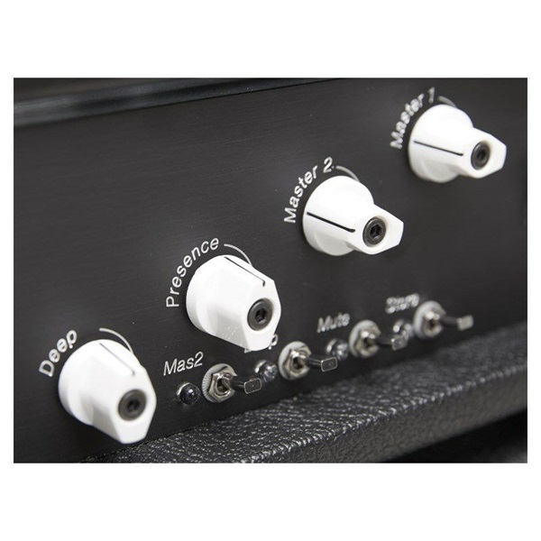 Equalization: each channel with gain, volume, treble, mids and bass, 2 master volumes, presence, depth