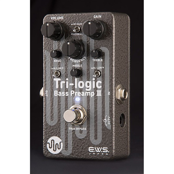 3代目となるTri-logic3ではこれまでのTrilogic1、2同様に色付けを極力排したニュートラルな特性を持ち、更に豊富な機能と様々なベースに対応出来る柔軟性を兼ね備えています。ゲインコントロールは最大+18dBクリーンブーストモードと、+26dBでコンプレッションの効いたハイゲインモードを選択できます。トレブルは±15dB、トグルスイッチで4KHzと8KHzを切替可能です。ミドルは±10dB、フリークエンシーノブで250Hz~3KHzの間を連続可変出来ます。ベースは±15dB、トグルスイッチで40Hzと80Hzを選択出来ますので、様々なプレイ環境において的確かつ柔軟なサウンドを素早く得られます。
