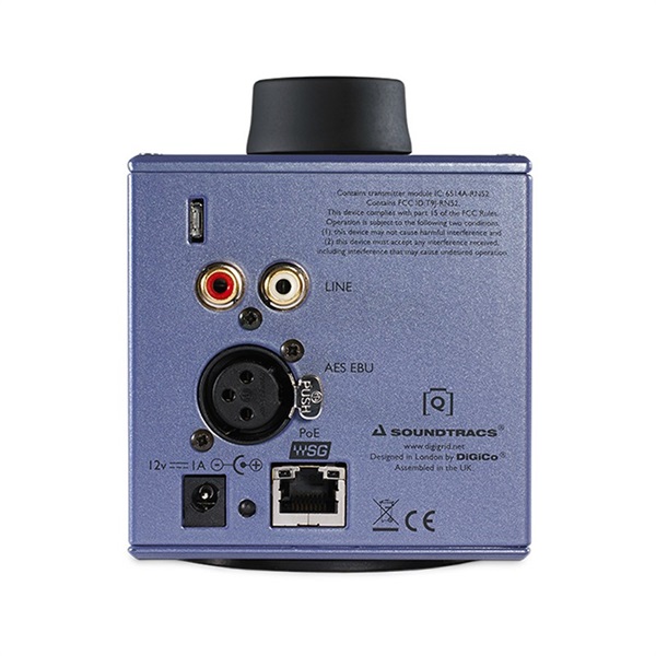 DiGiGrid Q の土台部分は滑り止め加工されており、オプションのマイクスタンド・アダプター・プレートに装着すれば、マイクスタンドに乗せて使うこともできます。端子をロックできる12VのAC-DCアダプターが付属していますが、PoE(Power over Ethernet)で電源供給が可能なので、DiGiGrid Sを中心にネットワークを構築すれば、電源いらずの簡単なセットアップが実現します。