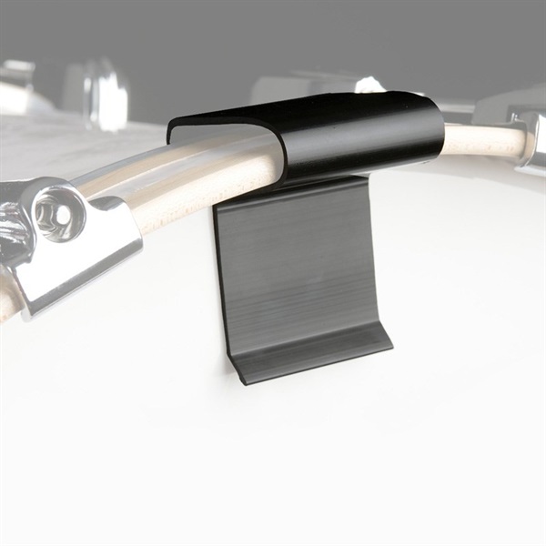 一般的なプレスフープやダイキャストフープといった金属製のリムに引っ掛けるだけで取り付け可能な、新しいドラムミュートです。
