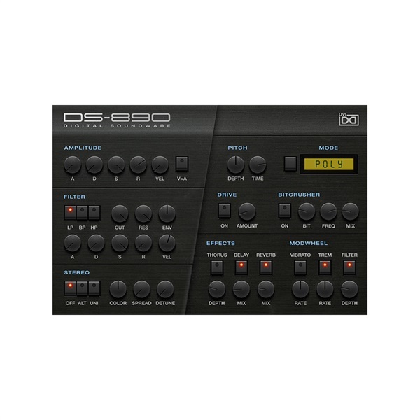 ベースモデルは、90年代シンセのジェダイです。生産完了してから長い時間が経過したに関わらず、その人気は未だに高く、現在もなお多くの国産シンセに影響を与えています。重用したアーティストも多く、Emerson Lake & Palmer、Depeche Mode、Laurent Garnier、the Prodigyなどが代表的です。機能面に関しては、ワークステーションコンセプトからの脱却を図り、デジタルシンセで最初にマルチモードフィルターを採用したモデルの1つとなります。さらにアナログシンセのようにフロントパネルに豊富なパラメーターが与えられ、サンプルスタックと音色操作の自由度が高かったのも魅力でした。実際にキーボードバージョン、そしてラックモデルがリリースされましたが、姉妹機にも関わらず、全く異なる特徴と魅力を持っています。DS-890では、その両方の良さと旨みを融合し、凝縮に挑戦しました。アナログシンセのような豊かな柔らかさと、帯域の広さを忠実に再現しつつ、分厚い肉厚のシンセベースから繊細なリードまで、すべて新たに用意した即戦力パッチでお届けします。