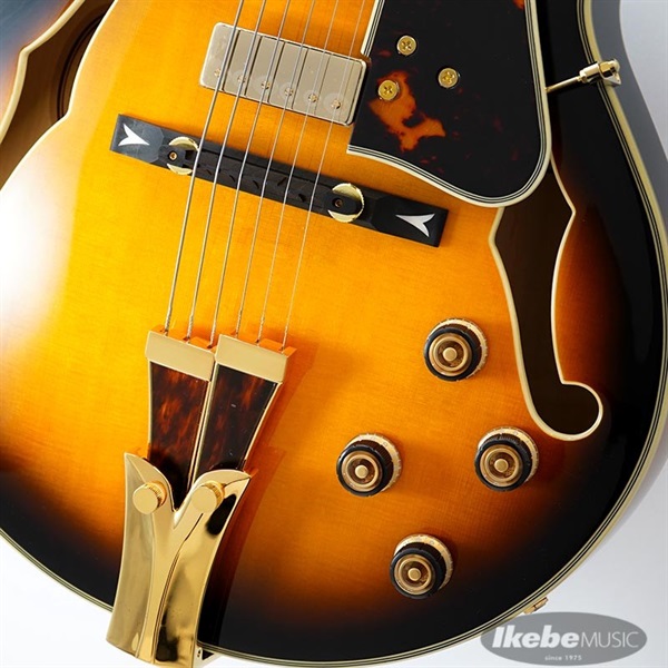 フル・ホロウ・ギターとしては小振りで抱えやすいスプルーストップ/メイプルサイド&バックボディから得られる適度な音量のカチッとした鳴りと素直なトーン、さらにフローティングでセットされるミニ・ハムバッカーの無指向的な広がり有るサウンドが、ジャズにとどまらずR&Bやソウルへと幅を広げていった彼の音楽性をそのまま語れるような多彩さの片鱗を見せてくれるでしょう。
