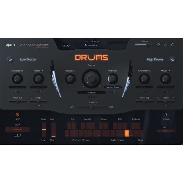 リアルな弦楽器のトラックをプログラミングするのは大変なことです。UJAMのパフォーマンス・エンジンは既製のシーケンスとクリエイティブな動作を提供しています。この手のドラミングのアレンジやレコーディング、プログラミングは、本来たくさんのコストと時間がかかりますが、DRUMSがあればDAWのテンポに瞬時に同期し、素早く簡単に作業を進めることができます。細かいことはプラグインが行なってくれるので、音楽制作により集中できます。