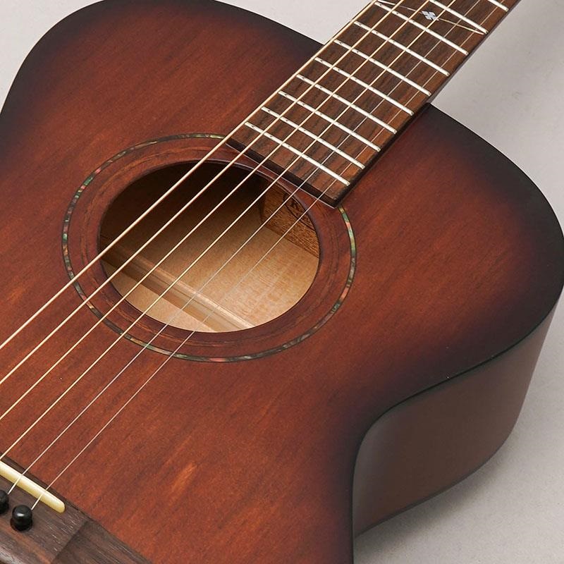 国産アコースティックでは人気の高い、日本が世界に誇る「K.ヤイリ」!伝統的な手法を用いながらもコストパフォーマンスの高いヤイリの中で、渋いルックスを持つ小柄なパーラーギター、YFP-02です。 小柄なギターを造るのが上手いヤイリらしく、小さいながらもカランと良く鳴るギターとして人気の高かったYFP-01をもとに、ボディー材にリンデンン材を用いリニューアルし、YFP-02となりました。ヤイリのミニギターのラインナップの中では伝統的なスタイルとサテン仕上げの渋いカラーからトラディショナルな雰囲気を持ったモデルです。