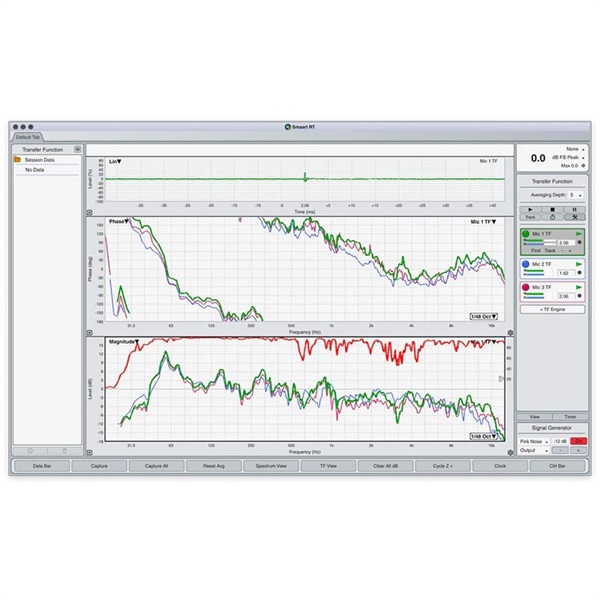 多くのSmaartユーザーがメインとして利用するモードです。スペクトラム測定と伝達関数測定は、世界中のプロのサウンドエンジニアにとって必要不可欠なツールです。リアルタイムモードは、サウンドエンジニアがシステムの最適化作業を迅速かつ効率よく達成できるように設計されています。