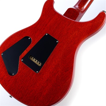 美しい杢目を持つメイプルトップにマホガニーバックと言う定番のウッドマテリアル、バック材はネックエンドからブリッジの部分までを残して空洞化されており、現在ラインアップに存在するホローボディー・シリーズに比べ、ソリッドな部分が多く設計されており、カスタムらしいソリッド感を残しながらも空気感をプラスした素晴らしい仕上がりとなっております。