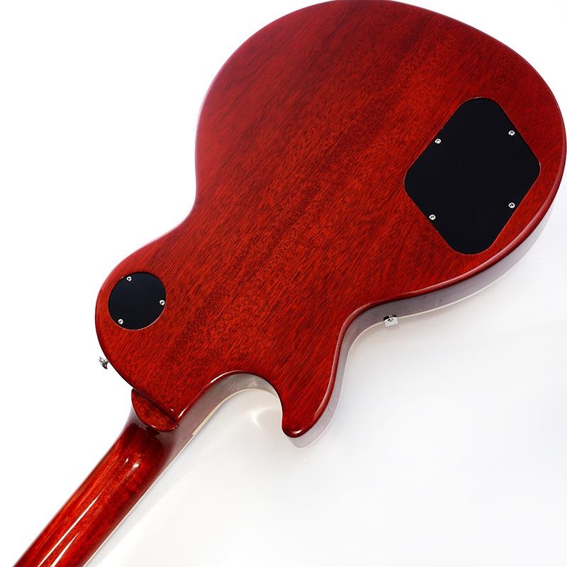 コチラは、王道のメイプルトップ、マホガニーバックを採用したクラシックな50sルックスモデルです。ウエイトリリーフを施さないソリッドボディを採用、ネックシェイプは程よいグリップ感のあるVintage 50sを採用しています。キャビティはトラディショナルモデルと同様に、基盤を使わず配線されており、コンデンサーはオレンジドロップが使われております。