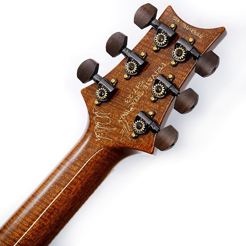 トップとバックにはプライベートストック・グレードの非常に美しいメイプル材が使用され、サウスアメリカン・マホガニーのセンター材と組み合わせる事によって、甘く艶やかなサウンドを生み出します。