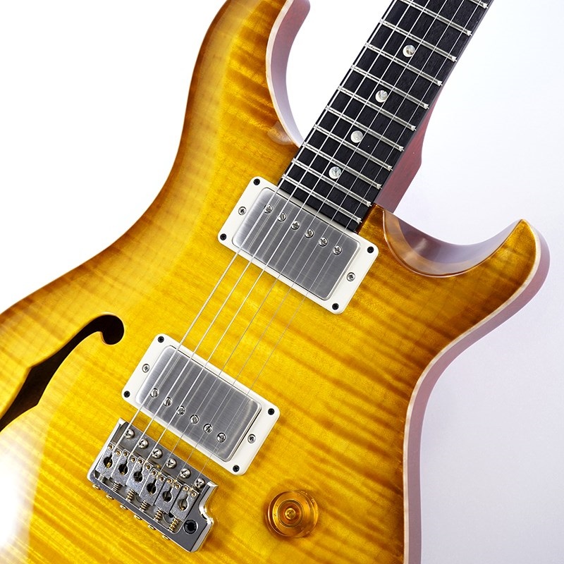 DGT Semi-Hollow Limited Editionは数年前にPRSへ特別にオーダーしたギターがベースになっています。このリミテッド・エディションでは、ムーン・インレイとMcCarty Sunburstフィニッシュを採用しました。そして今回セミホロウ・デザインすることによって、これまでのソリッド・タイプと比較すると高音域に温かみが加わり、低音域は少しスッキリしたサウンドになっているので、これまでのDGTとは一味違う魅力を兼ね備えた、とても幅広い場面で活躍出来るモデルに仕上がりました。 ? David Grissom