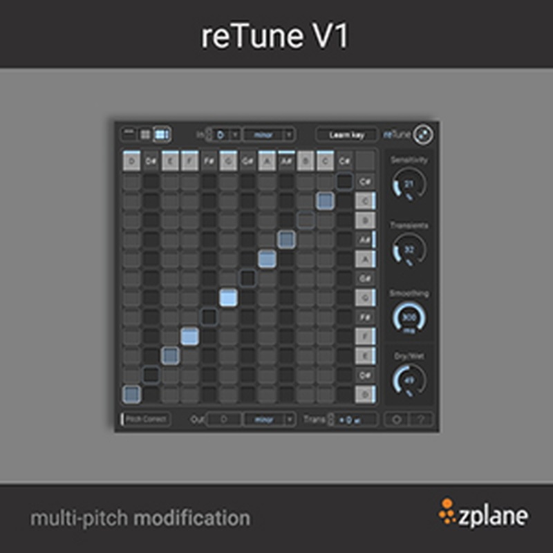 『reTune』は、オーディオのピッチ情報にアクセスし、キーやスケールを自由に変換できる革新的エフェクト・プラグインです。変換処理はリアルタイムで行われるので、キーやスケールを切り換えるたびにいちいち待たされるようなことはありません。スケールはクロマチック(半音= 1 オクターブあたり12 半音=ピアノの鍵盤と同じ)で個別に調整できるほか、メジャー、マイナー、フリジアン、ミクソリディアン、ジプシーといったスケールプリセットも収録。簡単に使い始めることができます。ピッチを最も近い半音へクオンタイズするような、クリエイティブなツールとして使うこともできます。