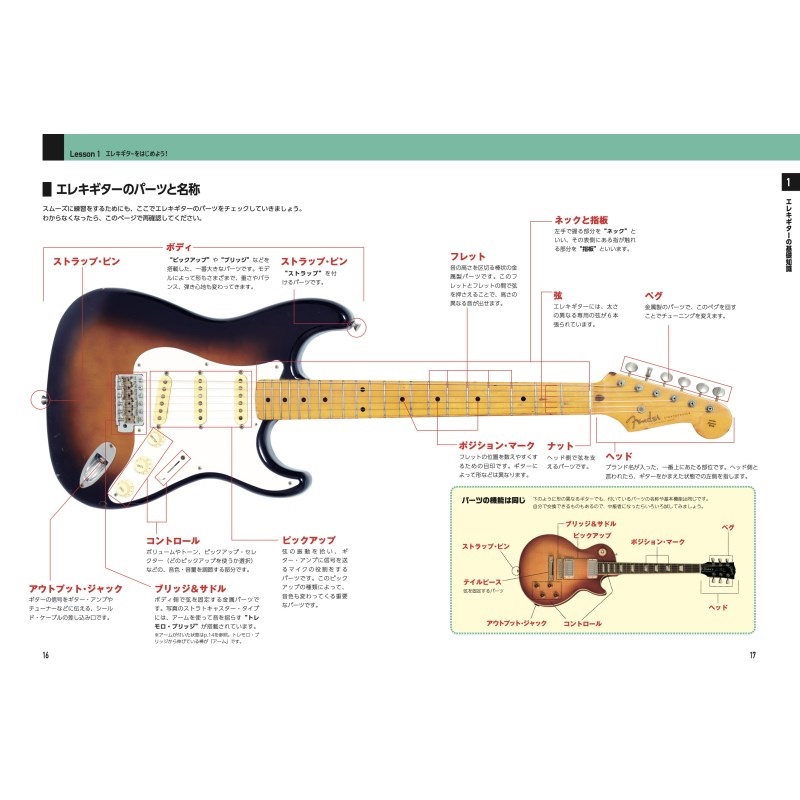本書はまったくのエレキギター初心者が、人気曲のフレーズをプレイしながら基礎を学べる教則本です。