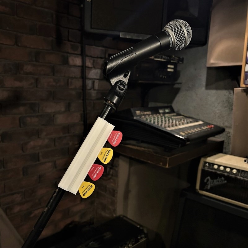 ライブ、リハーサルのときにホルダーをマイクスタンドにセットしてからでないと、ピックをセット(ホールド)できません。