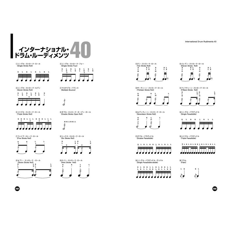 巻末には40種類のインターナショナル・ドラム・ルーディメンツも掲載。本書を活用して、本格派のドラマーを目指しましょう。