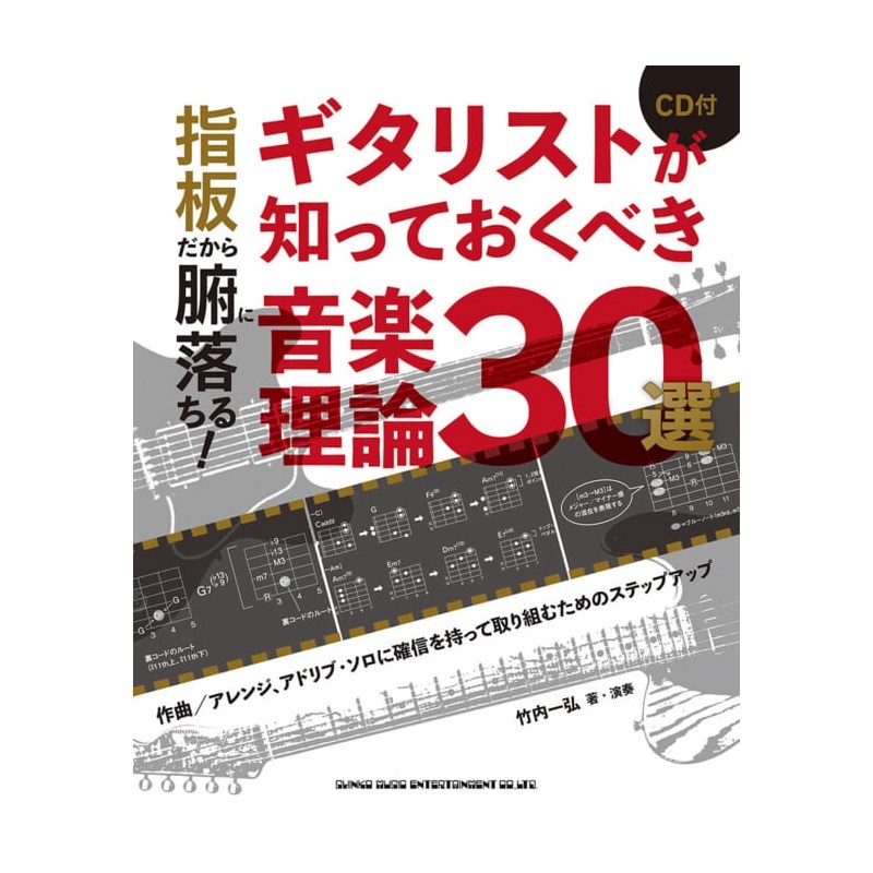 この本はロック、ポップス、フュージョンなどのポピュラー音楽で利用価値が高い音楽理論を30項目ピックアップし、指板図やダイヤグラムを豊富に使ってギタリストが理解しやすいように解説しています。例えば、コードとスケールの本当の関係を知れば、たくさんのテンション・コードを覚える煩わしさから解放されます。また、作曲やアレンジに役立つ理論も詳しく解説。まさに目からウロコ!です。そして、説明されている理論が実際にどう響くかを付属CDで確認することができます。本書で音楽理論への苦手意識を払拭し、上手に使いこなせるようになりましょう!