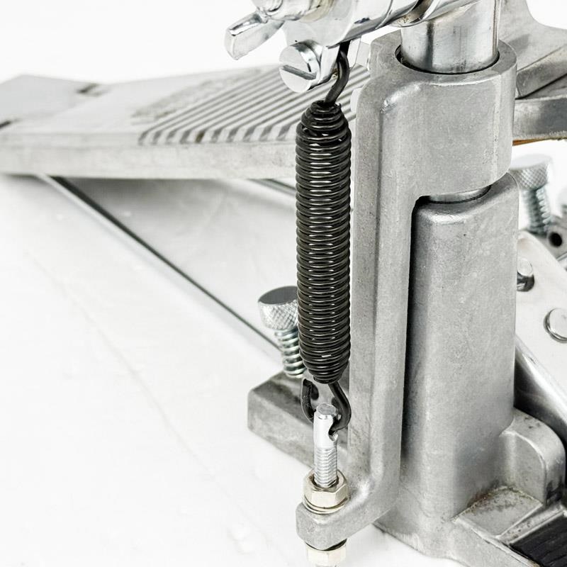FP901はフレームの高さ調整が可能となっており、当時流行していた大口径のバスドラムでもセンターをヒットすることが可能。ギア式の大型ガイドローラーと強靭なベルトによって、パワーをストレートに叩き込むことを目指したモデルです。
