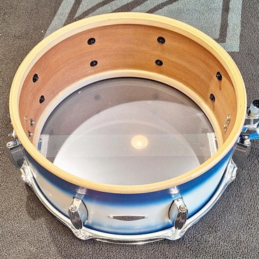 スネアのベアリング・エッジは、バター側がフル・コンタクト、ボトム側がブレッド&バターで、2.3mmのトリプル・フランジ・スチール・フープを標準装備。