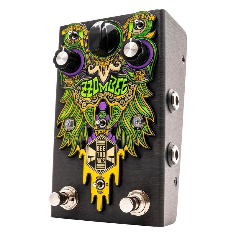 ZZOMBEE(ゾンビィ)はFiltremulatorと自称する、全く新しいアナログ回路のマルチエフェクト。固定フィルター、ワウ、オート/ランダマイズフィルター、トレモロ、スウェル、オーバードライブ、(ローオクターブ)ファズといった要素を無尽蔵に詰め込み、死者が蘇るほどのインパクトを持っています。