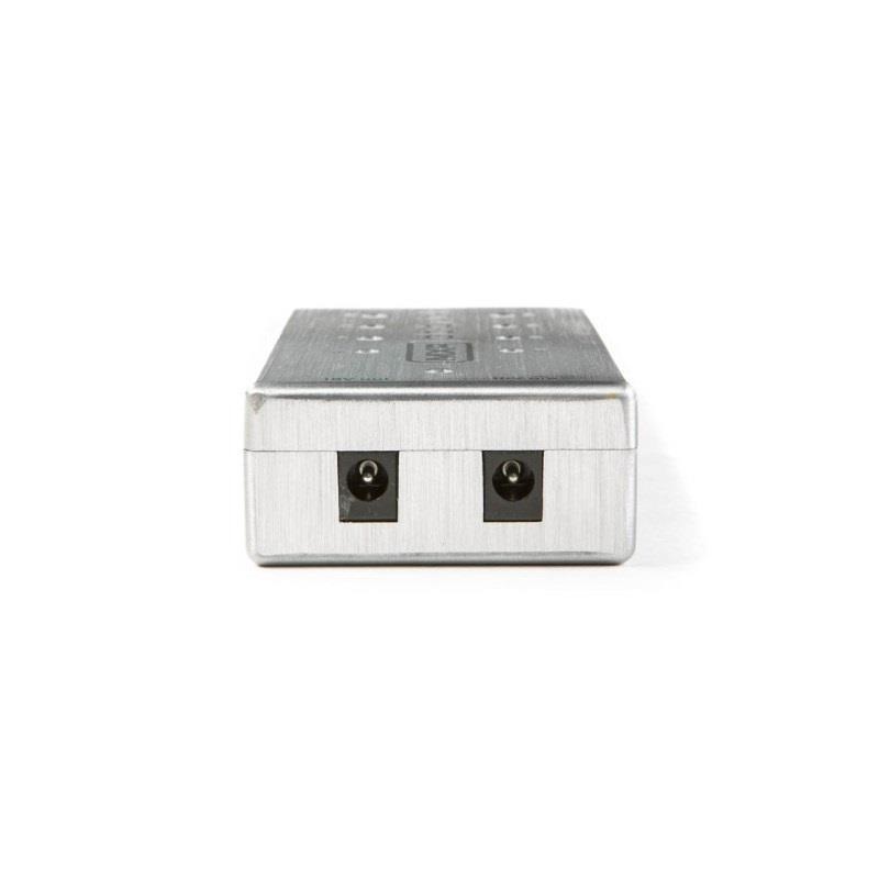 9V/18V両方のタイプのエフェクターに電源を供給でき、また100 ~240V / 47~63Hz対応と幅広く電圧・周波数をカバーしています。 9Vなら最大8個、18Vなら最大2個まで電源を同時に供給、オーバーロード(過重電流)やオーバーヒートの危険もありません(消費電力はMAX 1000mAの容量となっております)。