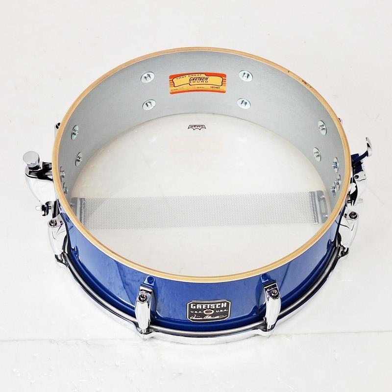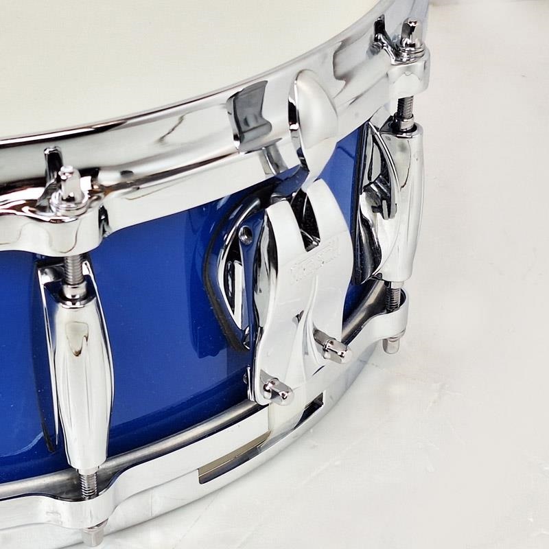 メインスネアである14×5は、ダイナミックレンジが広く分厚いサウンドと反応の速さが特徴で、12×4のサブスネアは、小口径らしからぬリムショットの大音量が特徴です。メイン/サブともに、Sting/Peter GabrielのRock, Paper, Scissorsワールドツアーで使用された、Gretsch USA Customのドラムセットへも採用されたオリジナルのCobalt Blue Gloss カラーです。