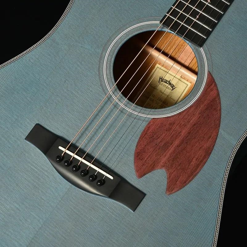 日本人にとってなじみの深いツバメをデザインのモチーフに選びました。Headwayともゆかりのある鳥であり、マスタービルダーの故・百瀬恭夫は毎年工房にやってくるツバメを楽しみにしていました。師への想いと、日本の奥ゆかしい風景に焦点を当てたデザインにより、ギター全体を通してストーリーを感じさせる一本です。