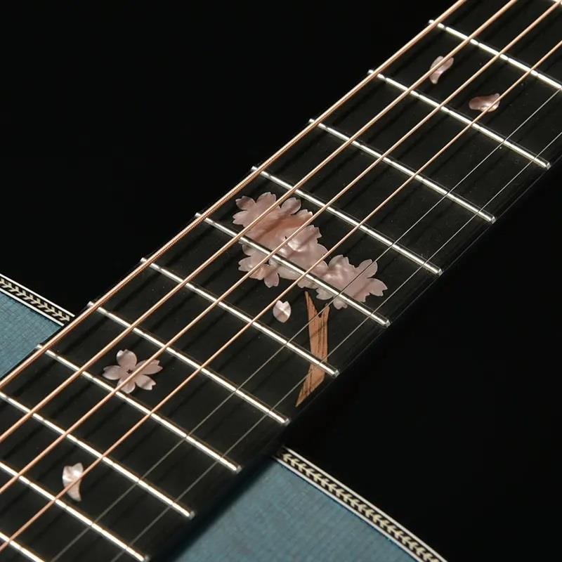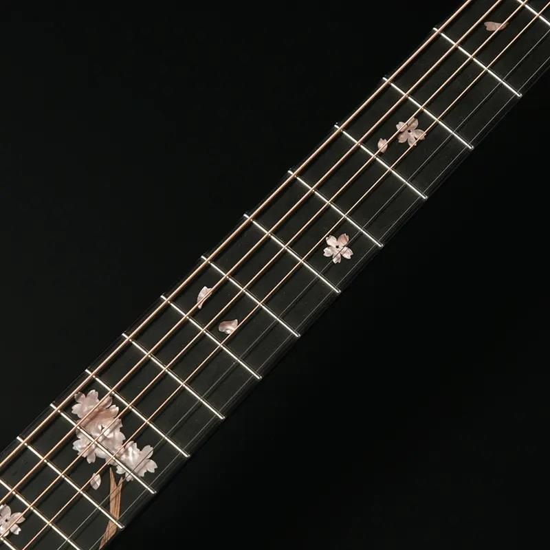 桜の花びらを模ったインレイが指板を美しく彩ります。通常のポジションマークをもつギターから持ち替えても違和感の少ないよう、演奏性にも配慮されたデザインです。