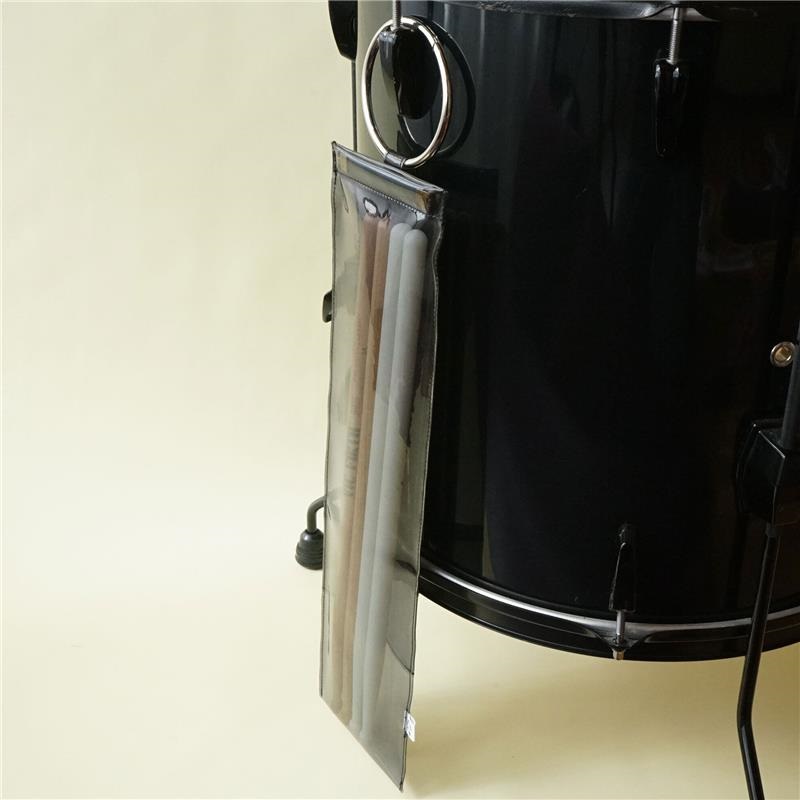 フロアタムにぶら下げるときは内側のスティックポケットにスティックの先を入れれば、持ち手部分が飛び出して演奏中のもしも!の時にも取り出しやすい仕様です。