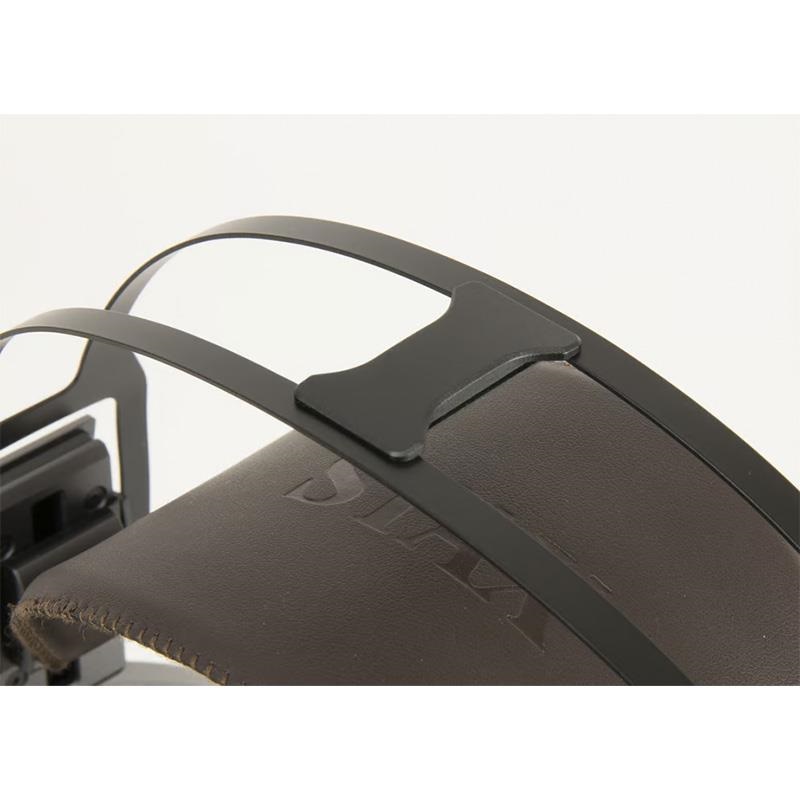 アークASSYにはステンレスを採用。ひねりやねじりへの耐性を上げ、より安定感のあるリスニング・フィットを目指しました。また、アーク頭頂部分に設えた「I」型アルミスタビライザーは、アーク自体の共振を抑え発音ユニットへの不要振動の戻りを低減。直に頭部に触れるヘッドパッド部分には本革を使用。位置は9段階のクリック機構を持つアジャスターにて調整が可能。