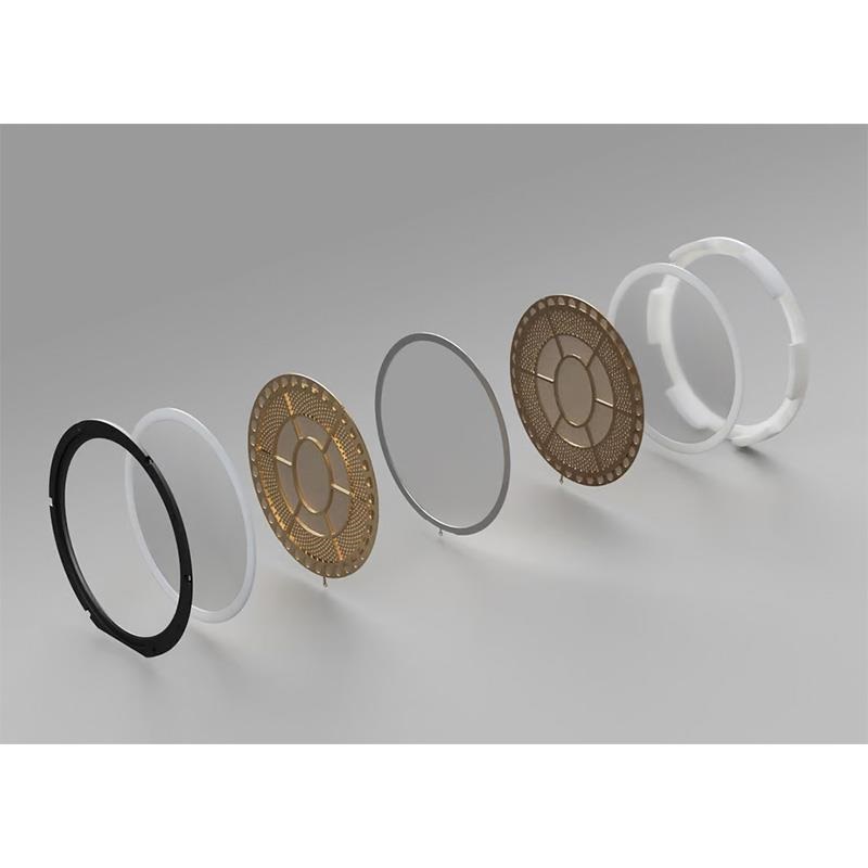 SR-Ωの登場から時を経ること20数年。その間に、金属メッシュ製造の精度が向上したのに加え、SR-009の開発過程で育まれた多層固定電極の製造ノウハウがSR-X9000を誕生させる大きな推進力となりました。SR-009Sに搭載されたMLER-2は、新たにメッシュ電極と従来のエッチング電極を熱拡散結合で圧着した4層構造のMLER-3へと進化。2世代のフラグシップ機を経て成熟させた多層固定電極の製造技術は、大型金属メッシュ電極の安定した量産化へ大きな貢献を果たしました。MLER-3は、これまでの多層固定電極よりさらに音の透過特性をスムーズに進化させながら、共振に強いリジッドな特性を両立させています。