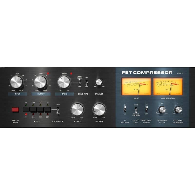 FET Compressor Mk IIは、オリジナルのサウンドと特徴はそのままにエミュレートし、DAWベースの音楽制作に適したドライブ、サイドチェーン、ステレオ・リンク、ハイのメイクアップ、ドライ/ウェットなどの現代的機能も新たに搭載。