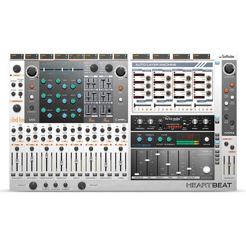 Heartbeatは、1980年代最高峰のアナログ・ドラム・シンセサイザーからインスピレーションを得ていますが、既存のドラム・マシンのエミュレートはしていません。サウンドの大半はSoftubeが独自にモデリングしたアナログ・シンセシスに由来し、これは慎重に選んだ波形を使用して増強されてきたものです。