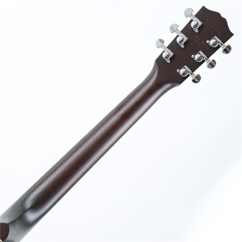 L-00 Specialはサイド&バック材に単板マホガニーを擁し、ギブソン伝統のスキャロップド X ブレイシング仕様のトップ材には単板シトカ・スプルースを使用しており、バランスのとれたトーン、そしてスモール・ボディながらも卓越したダイナミック・レンジを生み出します。トップとバックのボディ外周にはシングル・プライのバインディングによる装飾が施されています。細いくびれを持つL-00のボデイ・シェイプは中域に寄った繊細なサウンドを生み出し、自然と引き締まった低域のレスポンスをもたらすため、他の楽器とのミックスの中でも存在感を失うことはありません。奏でられるトーンはフィンガースタイルやブルースに理想的であり、他のジャンルやプレイスタイルにおいても高い親和性を示します。ユーリー材を使用したネックはダブテイル・ジョイント方式によりボディに接合され、他のギブソン・アコースティックギターと同じく、ニカワにより接着されています。ネック・シェイプには心地よくスムーズな演奏を可能にするスリムテーパー(TM)プロファイルを採用。12インチ・ラジアス形状の指板にはローズウッドを使用し、マザーオブパールのドット・インレイが埋め込まれ、スタンダード・フレットの19フレット仕様となっています。クローズド・スロット仕様のレクタンギュラー・ブリッジ部分にはローズウッドを採用し、TUSQ(R)製のサドル、ナット、ブリッジピンが使用されています。スムーズなチューニング性能を備えたGrover(R) Mini Rotomatic(R)チューナーが安定したチューニングを実現しています。L-00 Specialのカラーはサテン・ニトロセルロースラッカーによるサテン・ヴィンテージサンバーストまたはサテン・ワインレッドからお選びいただけます。L.R. Baggs Element Bronzeアンダーサドル・ピエゾ・ピックアップ&アクティブ・プリアンプを搭載し、ボリューム・コントロールもサウンドホール側面から簡単に操作できるため、付属のプレミアム・ソフトシェルケースから取り出した瞬間からステージでもスタジオでも即座にプレイをお楽しみいただけます。