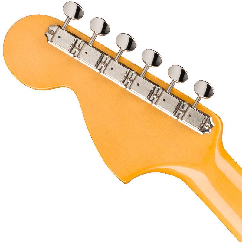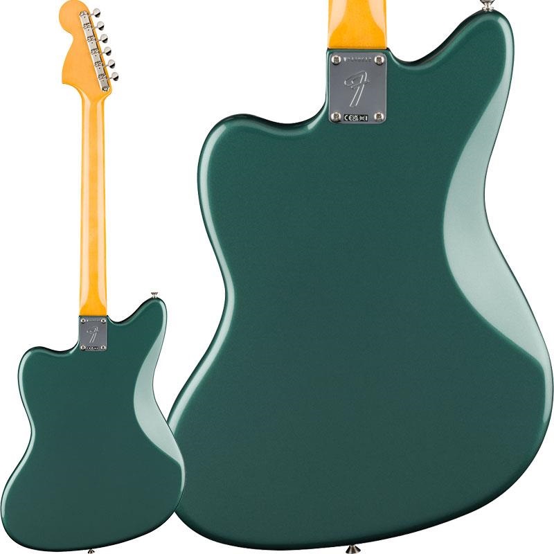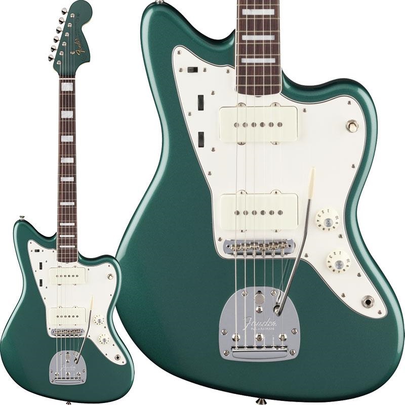 1966 Cシェイプのメイプルネックを採用したAmerican Vintage II 1966 Jazzmasterは、21本のヴィンテージトールフレットを配した7.25インチラジアスのラウンドラムローズ指板を備え、まるで1966年に舞い戻ったかのような、当時の楽器の演奏性を彷彿させます。ホワイトネックバインディング、パールブロックインレイ、Fender Deluxeチューニングマシン、そしてカスタムカラーモデルにはマッチングヘッドを備えるなど、1966年生産のJazzmasterの特徴を纏ったギターとなっています。特許取得のフローティングトレモロ、スレデッドサドル式のアジャスタブルブリッジ、リズム/リード回路に配線されたPure Vintage ? Jazzmasterピックアップが、クラシックなトーンとオーセンティックなフェンダーのフィーリングを提供します。