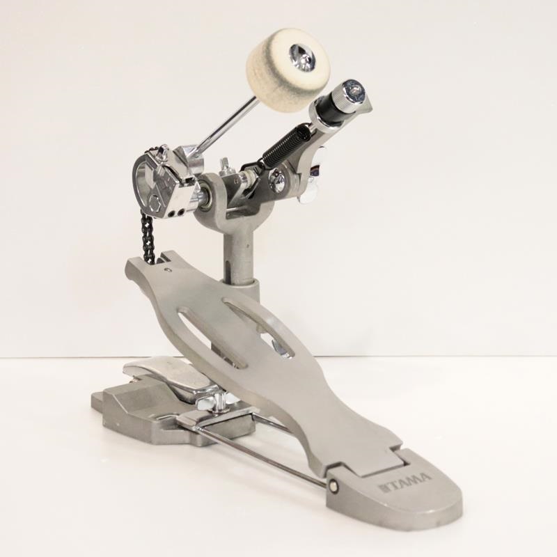 -スプリング付け根のパーツにある角頭ボルトをドラムキーで操作することで、ビーターアングルを無段階に、フットボード角度と連動する形で調整可能です。